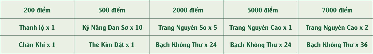 Khi người chơi đạt đủ điểm yêu cầu, sẽ nhận được những phần quà giá trị tùy theo các mốc