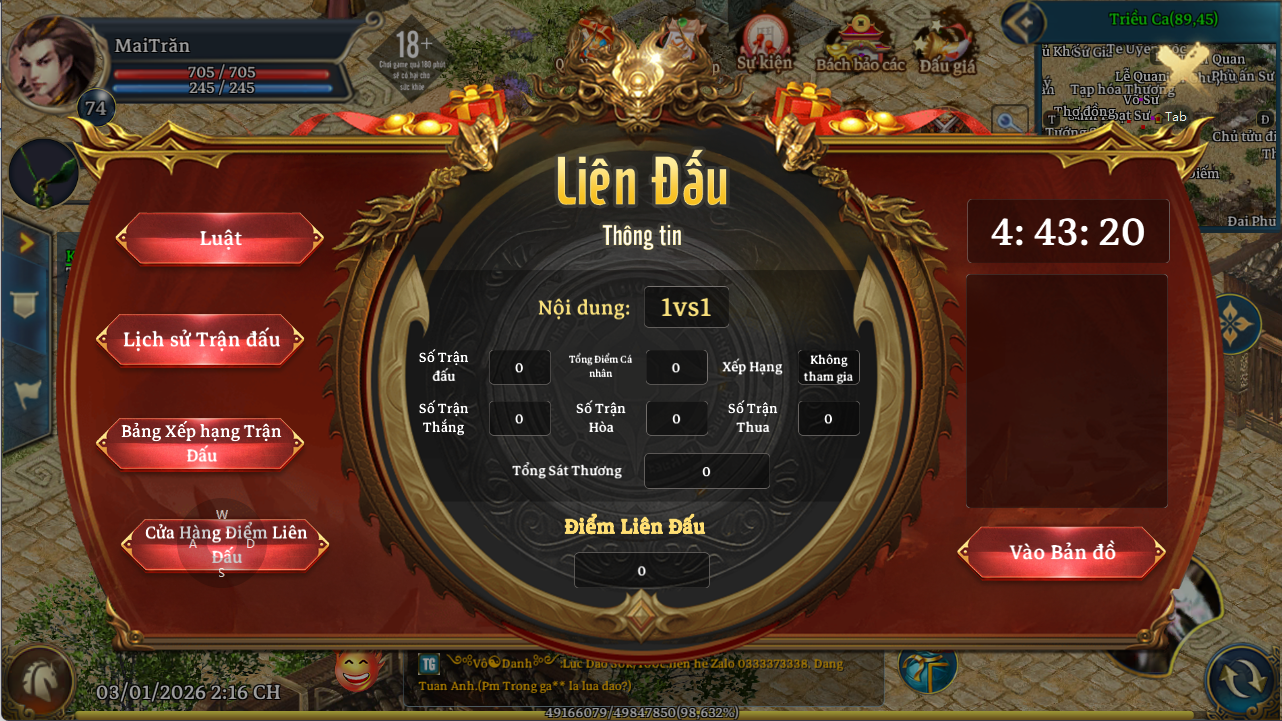 Lưu ý: Trước thời điểm thi đấu, người chơi bắt buộc có mặt tại Bản đồ Báo Danh
